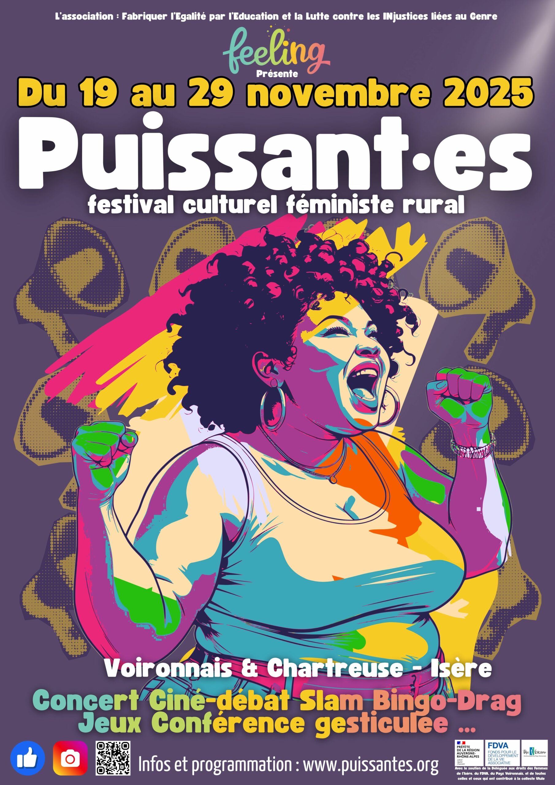 Deuxième édition du festival culturel féministe rural de l’association FEELING. Il a pour objectif d’utiliser la culture sous toutes ses formes pour sensibiliser le grand public aux violences que l’ONU nomme « de genre ». C’est pour cela que PUISSANT·ES est programmé autour de la date du 25 novembre « Journée Internationale de lutte contre les violences faites aux femmes » .